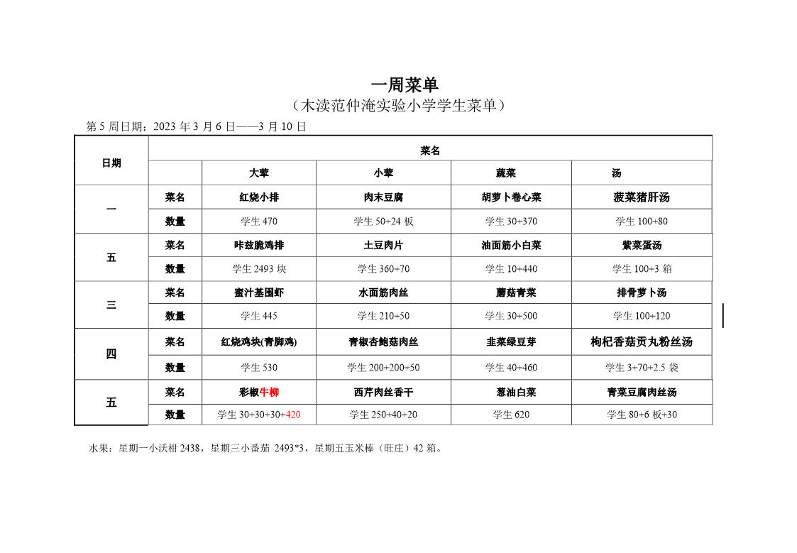 木渎范仲淹实验小学2022-2023第二学期第四五学生菜单